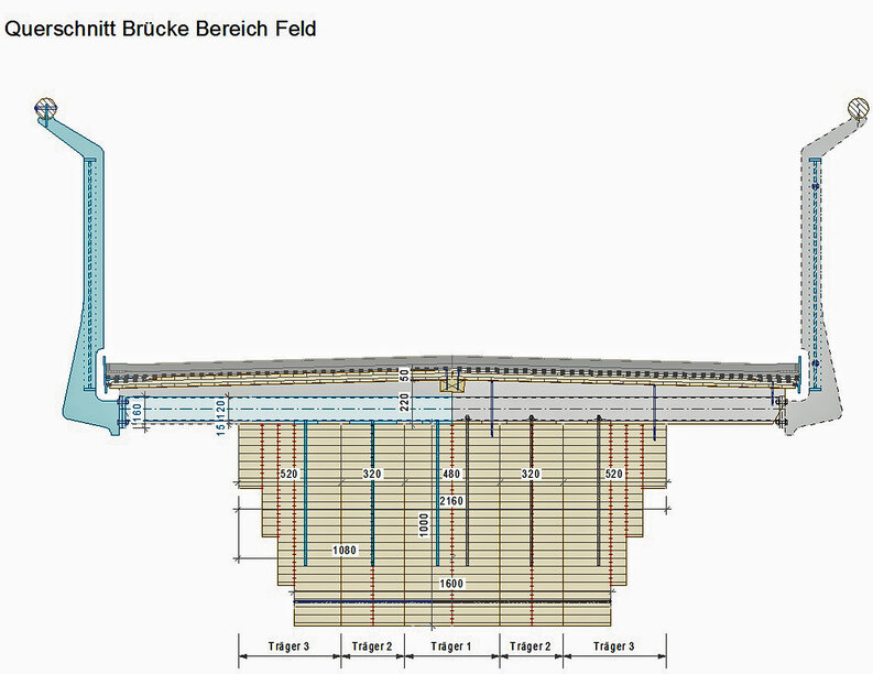 In Burgdorf werden aktuell die massiven Holz-Brückenträger produziert. Die ersten 40m langen, 520mm breiten, 1000mm hohen und 10 Tonnen schweren blockverklebten Brettschichtholzträger stehen bereits auf Zimmermannböcken und warten auf den Feinschliff. Die Montage ist für die Kalenderwoche 4 des neuen Jahres 2020 geplant.