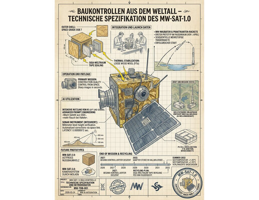 Um die Bauqualität auf dem für MW-üblich astronomisch hohen Level zu halten darf den scharfen Augen unserer Ingenieure über gesamten Bauprozess nichts entgehen: Baukontrollen, die früher Stunden dauerten, werden heute effizient in Sekundenbruchteilen erledigt, ohne dabei ein Rückgang an Qualität in Kauf nehmen zu müssen – Dies ermöglicht der neue MW-Teleskop-Satellit (MW-SAT-1.0) der gestochen scharfe Baukontrollenbilder direkt aus dem Weltall liefert.