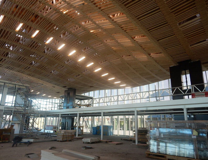 Prof. Dr. Andrea Frangi informierte uns im Rahmen einer Präsentation über die aktuellen Forschungen und Entwicklungen. Anschliessend machten wir uns auf den Weg zum "House of Natural Resources". Dieses Gebäude wurde durch den Einsatz von Laubholz mit einigen Preisen ausgezeichnet. Die Innovation in der Tragstruktur zeigen: