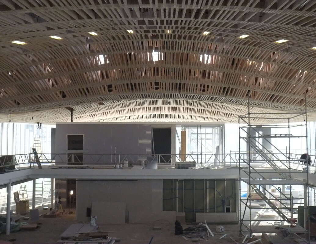 Zuerst besichtigten wir das neu errichtete Institut für Technologie in der Architektur ITA. Dabei galt der Schwerpunkt der Dachstruktur des Neubaus, welches eindrücklich die Möglichkeiten der digitalen Fabrikation und Vorfabrikation von Holzkonstruktionen zeigt.