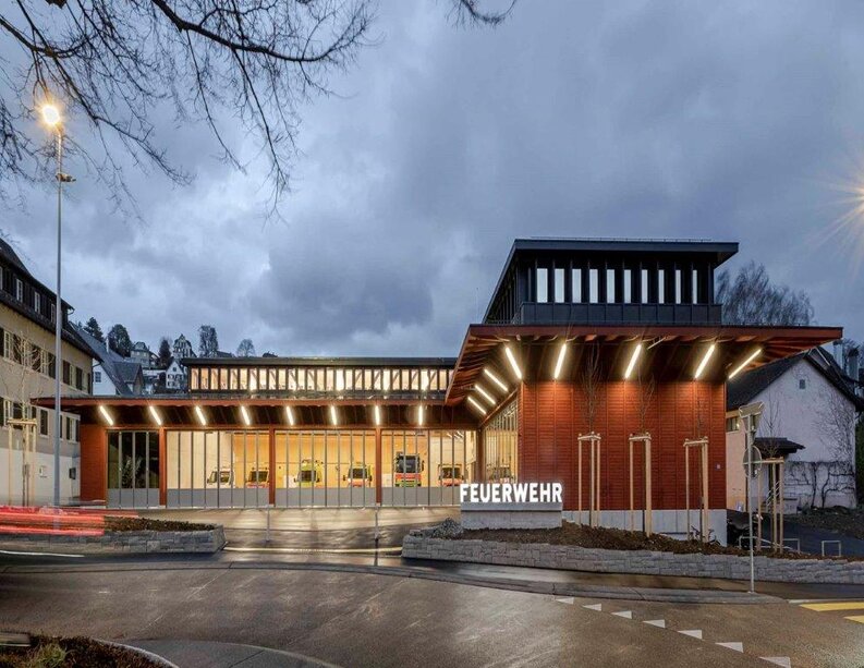 Nebst nachhaltigem Material wurde ein Nutzungsmix zwischen Feuerwehrgebäude und Alterswohnungen geschafft. Durch diesen Nutzungsmix ist es gelungen ein sozial nachhaltiges Projekt zu schaffen. Die Materialwahl der Bauteile wurde auf die jeweiligen optimalen Eigenschaften abgestimmt.