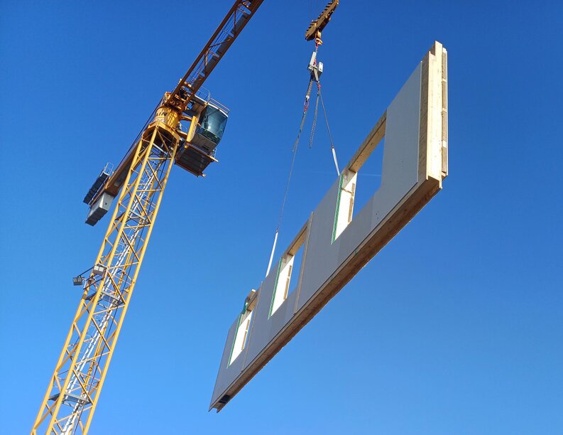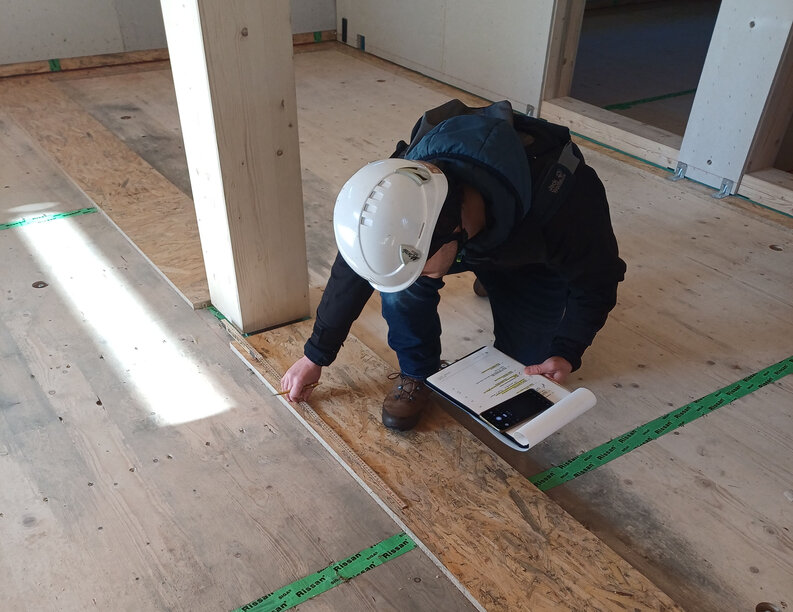 Das erste von drei Wohngebäuden steht und die Montage ist in vollem Gange. Der richtige Zeitpunkt also, um eine Baukontrolle durchzuführen.