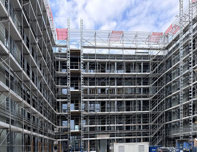Im Auftrag der Stiftung Habitat plante das Architekturbüro Stump & Schibli Architekten 64 hochwertige, lärmgeschützte Wohnungen, bei denen Holz als zentraler Baustoff dient. Makiol Wiederkehr AG wurde für die Planung der Holzbau - Ingenieurarbeiten beauftragt.