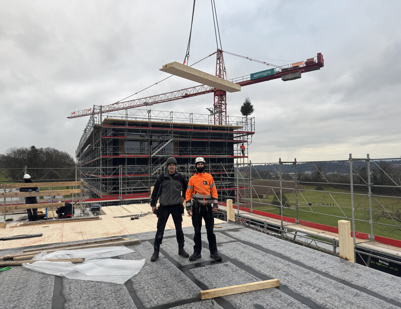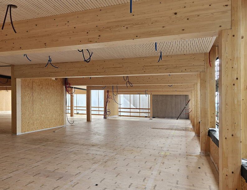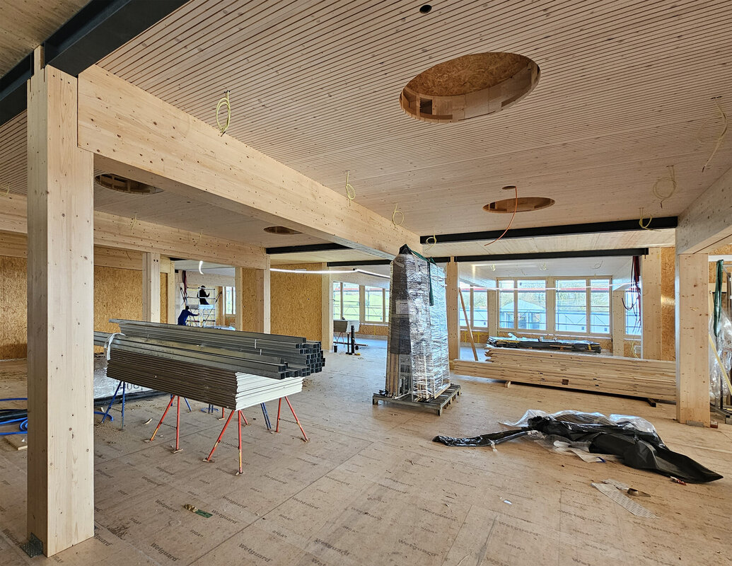 Das letzte Lignatur Element der ersten Etappe des Neubaus der Schulanlage Nägelimoos wurde gesetzt. Das ist ein echter Meilenstein! Mit knapp 4'500m2 sichtbarer Lignatur LFE Elementen war das sowohl für den Hersteller wie auch den Unternehmer ein sehr grosses Projekt. Die Abwicklung und Zusammenarbeit haben reibungslos geklappt. Es wurde "just in time" produziert und deshalb waren keine Zwischenlager nötig, was die Baustelleninstallation enorm erleichtert hat. Der Grossteil des Holzes kommt aus unserem Nachbarland Österreich, aus Kärnten.