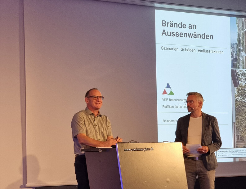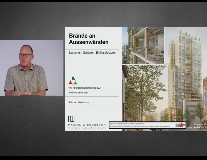 Reinhard Wiederkehr referierte an der VKF Brandschutzfachtagung über Brände an Aussenwänden. Sein Referat beinhaltete verschiedene Brandszenarien, mit denen man an der Aussenwand umgehen können muss. Ein begrenzter Schaden an der Fassade ist akzeptiert, wie kann man den Schaden in diesem akzeptierten Bereich halten. Welche Materialien kann man an der Fassade verwenden, wie geht man mit neuen Systemen um, wie zum Beispiel Fassadenbegrünung oder Photovoltaikanlagen und was ist dabei zu beachten. Mit diesen und weiteren Fragen und Lösungen war es ein sehr gelungenes und spannendes Referat.