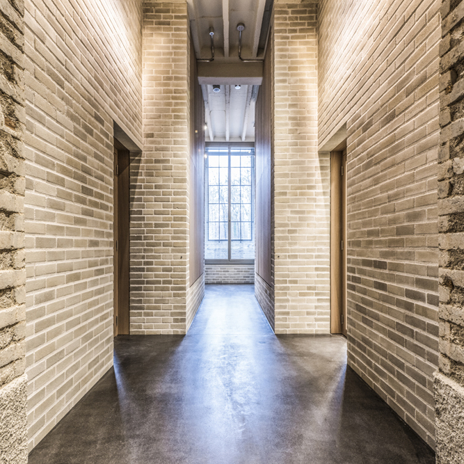 Das denkmalgeschützte Industriegebäude auf dem VonRoll-Areal in Bern wurde zu einer Musikschule (Lehrerausbildung der PH) umgebaut. Die Hauptnutzung ist Schule bzw. Musikschule. Das Gebäude weist zwei Geschosse über Terrain und ein Untergeschoss auf. Im Erdgeschoss befindet sich ein Plenarsaal mit einer Personenbelegung von maximal 300 Personen. Die Unterrichtsräume wurden zu Nutzungseinheiten zusammengefasst. Die bestehende Tragstruktur wies zu geringe Bewehrungsüberdeckungen auf und genügte den aktuellen Normen nicht. Der Bestand wurde daher mit einer zusätzlichen flächigen Betondecke ertüchtigt und für den Normal- und den Brandfall bemessen. Bei den lastabtragenden sichtbaren Stahlteilen wurde, im Einverständnis mit der Brandschutzbehörde, ein dämmschichtbildender Brandschutzanstrich aufgetragen. Das Brandschutzkonzept wurde baulich (ohne Löschanlage) erstellt. Für die Erhöhung des Personen- und Sachwertschutzes wurde das Gebäude mit einer Brandmeldeanlage als Teilüberwachung in Kombination mit einer Evakuationsanlage ausgerüstet. Die Fassadenkonstruktion blieb als Sichtmauerwerk bestehen.