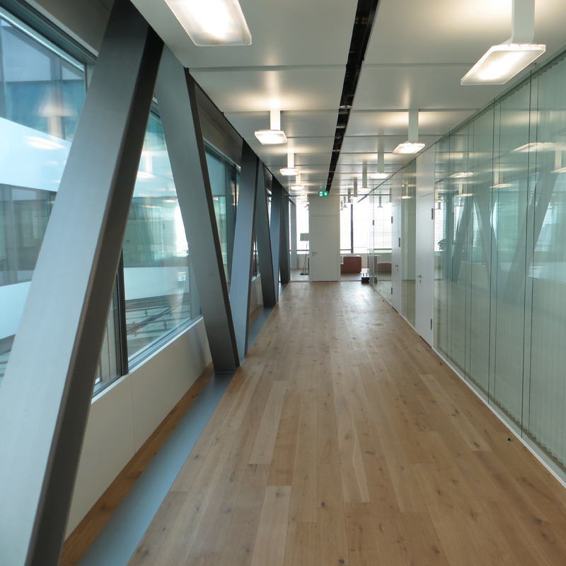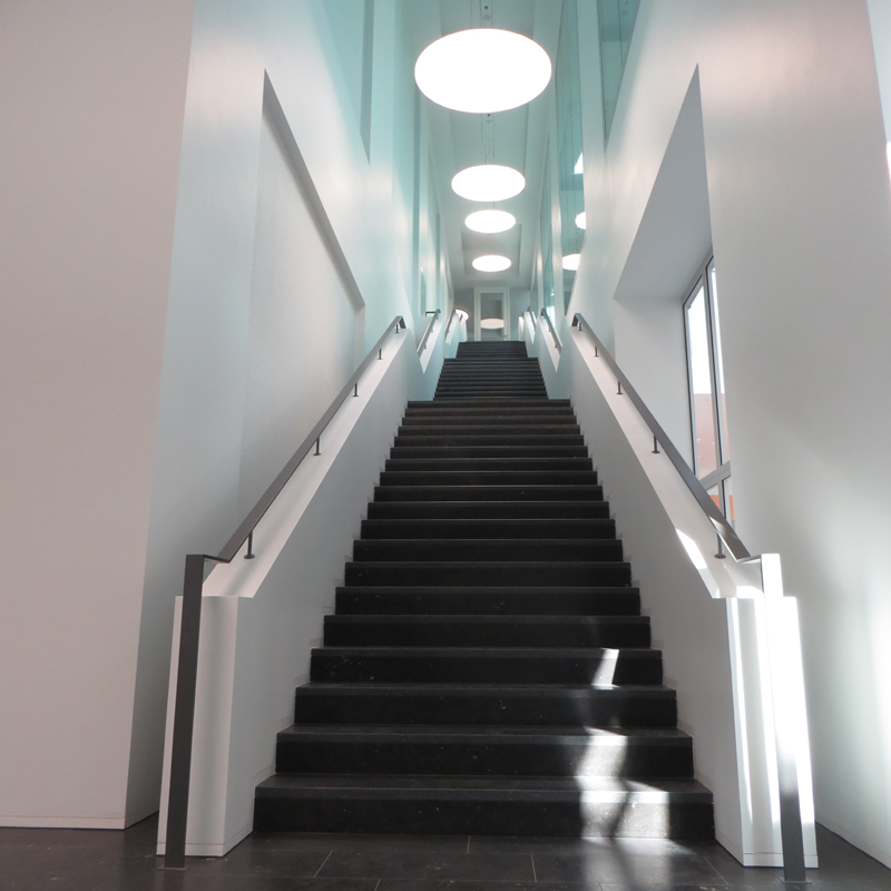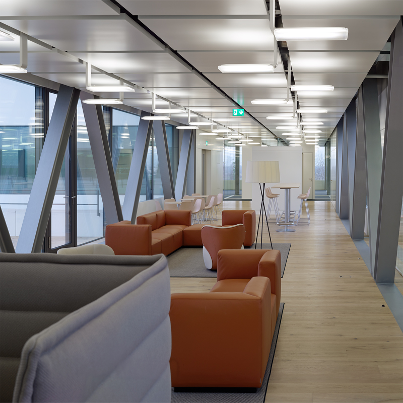 Für das Gebäude wurde ein objektbezogenes Brandschutzkonzept in Abstimmung mit der Brandschutzbehörde und den Feuerwehren erstellt. Durch das optimierte Entrauchungskonzept mit Brandlüfter in den verschiedenen grossen Brandabschnitten, konnte auf eine maschinelle Entrauchung verzichtet werden. Durch den Sprinkler als Vollschutz konnten grossflächige Brandabschnitte erstellt und reduzierte Feuerwiderstandsanforderungen umgesetzt werden. Ergänzend ist das Gebäude mit einer Brandmeldeanlage als Teilüberwachung ausgerüstet.