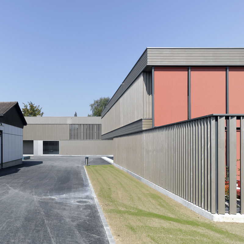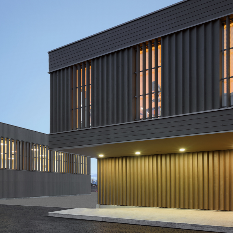 Beide Gebäudekörper sind aus ökonomischen Gründen sehr kompakt gehalten und strukturell modular aufgebaut. Die hochwärmegedämmte Aussenhülle ermöglichte zusammen mit der kontrollierten Lüftung der Nutzräume eine Erstellung der Bauten im Minergie-Standard und sichert langfristig niedrige Betriebskosten.