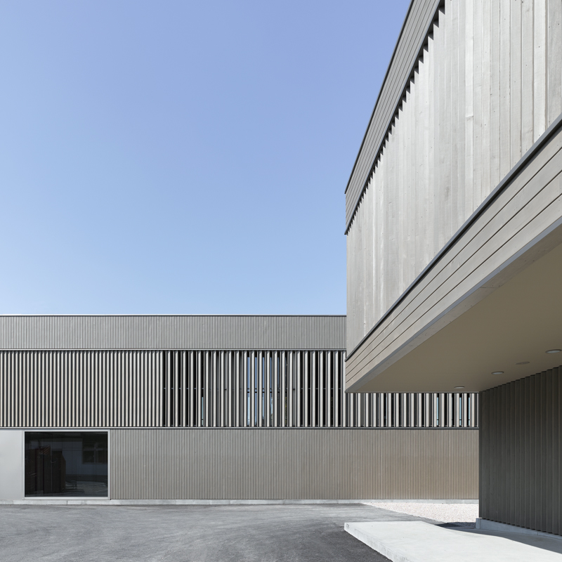 Als Antwort auf die Anforderungen der Nachhaltigkeit eines öffentlichen Bauwerks in der heutigen Zeit wurde eine Holzbaukonstruktion errichtet, die in den Kernbereichen durch massive Bauteile in Sichtbeton ergänzt wird.