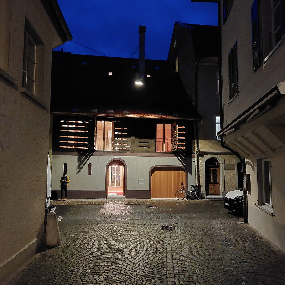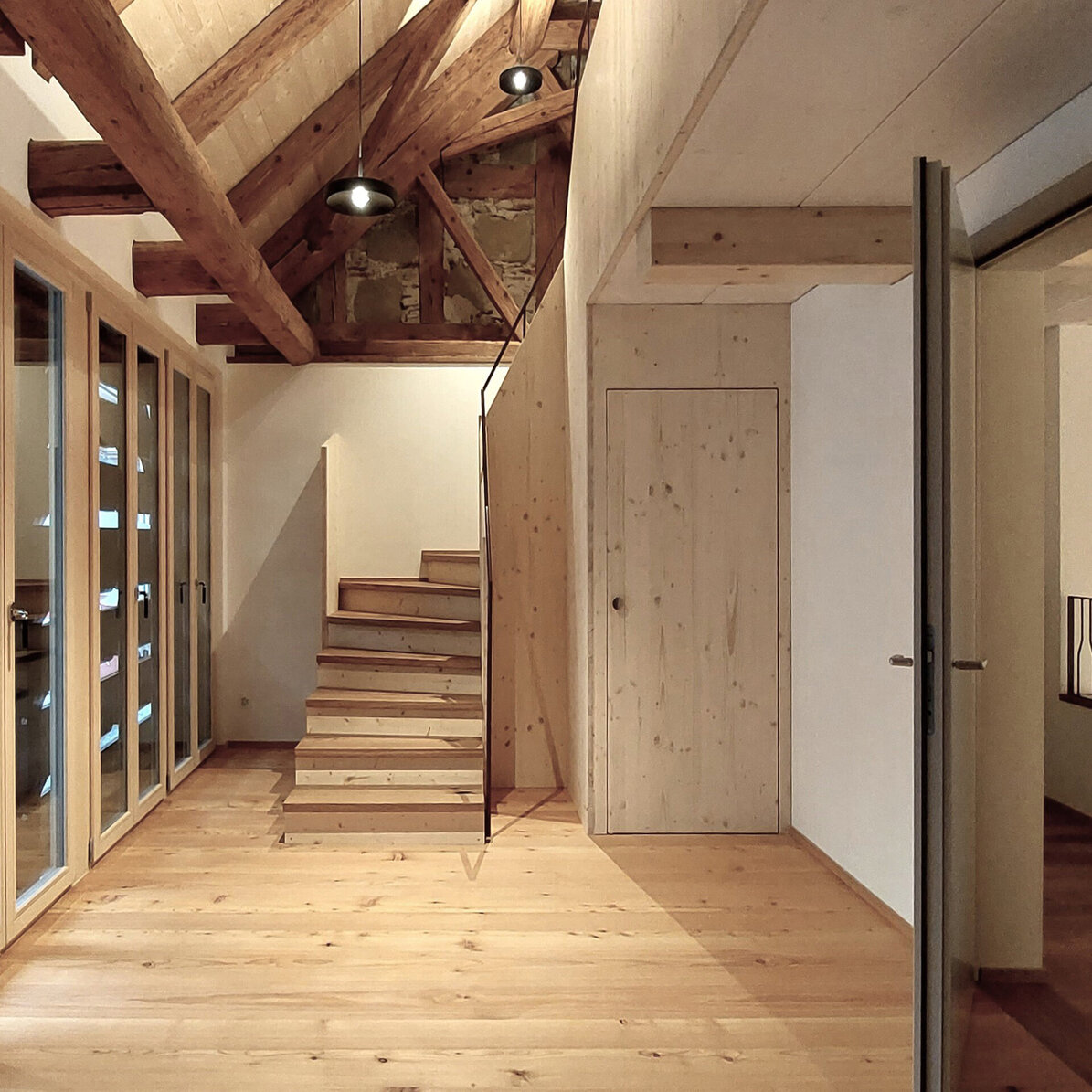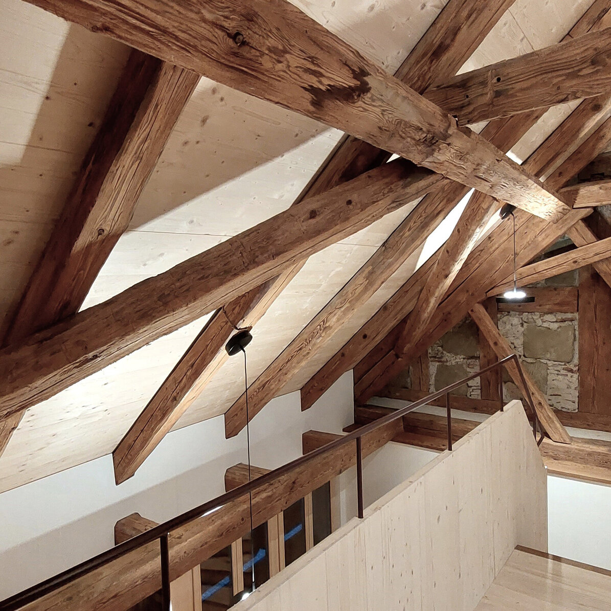 Das Altstadthaus ist ein dreigeschossiger Altbau ohne Unterkellerung. Das Ökonomiegebäude aus dem 19. Jahrhundert wurde direkt an die ehemalige unter Denkmalschutz stehende Stadtmauer angebaut. Das Hauptbauwerk ist mit dem damals üblichen Mischmauerwerk erbaut worden. Die Holzkonstruktion war teilweise stark beeinträchtigt und musste, für die neue Nutzung als Wohnhaus, stellenweise erneuert werden. Eine Herausforderung waren die unterdimensionierten Bauteile und teils grossen Spannweiten. Im ersten Obergeschoss erreicht man über die Zuhörer- und Sängergalerie die private «Stube» aus Arvenholz, welche gassenseitig bis unter das Steildach reicht. Von hier aus erschliesst eine Treppe die privaten Schlafräume und das Gästezimmer im Dachgeschoss.